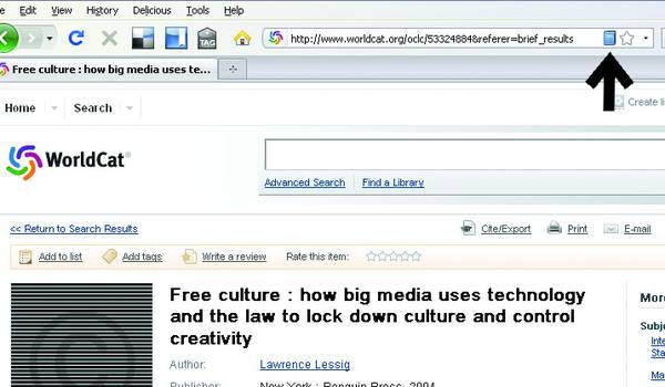 LibX scans pages as the browser loads them and checks for metadata, such as book and article citations. When it detects a citation—on Amazon.com or the New York Times book review page, for example—it embeds a “cue,” a small graphic like your library’s logo, that links to the item’s record in your OPAC (see figure 1). In other words, if your users (or you) hate to use your catalog, they can use Amazon as a search tool instead, then click through to see if your library has the item they want. (Zotero also works by scanning pages for citation metadata; see below.)