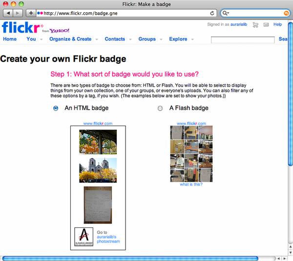 For example, consider the Flickr badge creator (www.flickr.com/badge.gne). The badge creator is a tool that provides Flickr users a means to create and edit code to insert HTML or Flash code snippets into any Web pages to which the user is able to insert raw code. The result is a stylish rotating display of any set of one’s Flickr photos. It is, essentially, a widget generator. Regardless of HTML or programming skill level, academic librarians can create their own such code generating tools to offer teaching faculty the ability to leverage the search power of library tools; these code snippets can be “stolen” by teaching faculty and inserted into course management systems like BlackBoard, WebCT, and eCollege, and personal Web pages and Facebook pages—any place that people can cut and paste raw HTML code. To take provision of this kind of service to this next, platform-free level, all it takes is the ability to create a simple Web page, analyze a bit of HTML, and cut and paste.