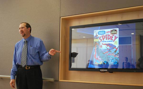The 20x20 event was our most well-attended Find Your Place activity. For this event, we solicited OU-Tulsa students, faculty, and staff to create 20 PowerPoint slides covering any topic. Each participant was then given twenty seconds per slide to present on his or her topic (hence, the name 20x20). The event was held at noon in the library’s new Arts and Information Digital Gallery. The digital gallery features five plasma television screens on which the presentations were displayed. The 20x20 event offered the opportunity to promote the features of the library’s new gallery and facilitate interdisciplinary participation.
