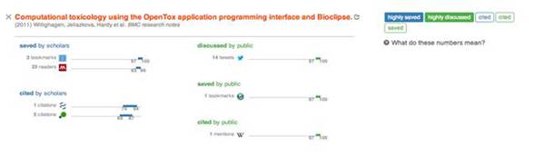 | 6. | Priem, J.. Piwowar, H.. Hemminger, B.M.. , “Altmetrics in the Wild: Using Social Media to Explore Scholarly Impact,”. 2012 , http://arxiv.org/abs/1203.4745 (accessed May 15, 2013). |