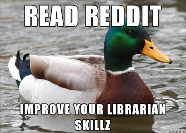 Reddit dubs itself “the front page of the Internet,” and it often lives up to this claim; if something has gone viral on the Web, its rise to popularity is very likely due to it being linked to on Reddit.com and then subsequently spreading like wildfire from there. To a new user, Reddit may seem like a virtual wild west, full of ducks who give advice, adorable cats, and plenty of less savory content. But there is far more to be learned from the Reddit community than what appears on the surface. Digging deeper, one will find interesting discussions about libraries, late-breaking research studies, fun facts, and long, thoughtful threads on virtually any topic imaginable.