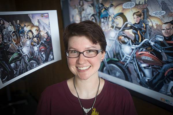 “I wanted to create a hardcore female character that was empowered on a motorcycle,” Bass said. “What’s cool about Marvel comics is that many of their female characters are complicated and realistic.”