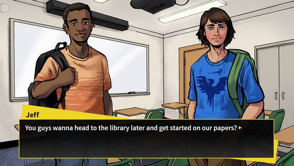 With this structure in mind, we then developed a detailed breakdown of how the story would progress, and where the player might make decisions. We felt that, because the game is a required component of a course, it would perhaps be too frustrating if students could make choices that resulted in Game Overs. (How many times would you want to restart a game if you had to play it?) However, we did find a way to integrate “bad endings” into the gameplay in a way that wouldn’t be an insurmountable roadblock to players: after the “bad ending” screen, the game just picks up again from the last choice. Once we completed the scene breakdown within the acts, we knew what characters and background art we would need. With this decided, we could start the process of looking for an artist.