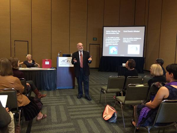 Thomas Hoerr, noted author and head of the New City School, advised on how to best embrace those changes through fostering grit, an acquirable skill. He emphasized that “who you are is more important than what you know” and the need to embrace failure. Hoerr also pointed to Carol Dweck’s idea of fostering a growth mindset instead of a fixed mindset, a necessity for librarians adapting to a changing environment. One strategy is to focus on balancing excellence and perfection, and knowing when to be okay with good enough.