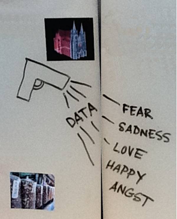 It wasn’t until I was flipping through pictures that I had taken from a “Day of Data” event that I saw an image that speaks to the heart of the matter. This “Day of Data” took place at the Institute for Computational and Experimental Research in Mathematics at Brown University, and was held to “re-engage faculty in the data culture—to inform, prepare, and enable them to address societal, technical and research challenges together.”1 Brown is not the only institution that has had such events, as it is becoming more commonplace for universities to host data-focused events.2,3,4 As researchers spoke, others could respond via postcards. One anonymous researcher sketched a gun that shot out the word “data” and from that, the emotions “fear,” “sadness,” “love,” “happy,” and “angst.” This image eloquently articulates that data can dictate a researcher’s success or failure, and as such, is fraught with a full spectrum of emotion.