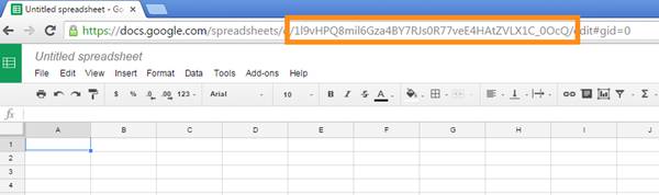 To set up the import, we opened the results for each form (by opening each form and clicking on “view responses” along the top). In our case, this meant opening the librarian report and the professor survey forms and viewing the associated results. When viewing the results, we noted the unique “spreadsheet_key” associated with each set of results, as seen in Figure 1.