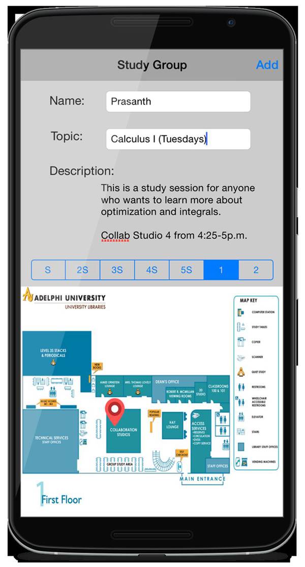 We were very lucky that students at Adelphi’s Hack the Library 2015 produced many useful ideas that we can apply at the library. The winning team devised a study group scheduling tool. It allows students to meet like-minded classmates and get help with their studying—no matter where they are located in the library. A student can indicate a field of study and put a pointer on the map to show his or her physical location. We are going to make the winning app part of AU2GO—our university’s mobile app. We also gained a better understanding of how students use the library and the issues they have. We received a great deal of positive feedback from both students and volunteers. The library emerged with a better image and an improved understanding from other departments on campus about what we do.