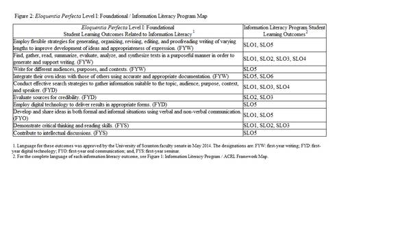 Quoted from the “Eloquentia Perfecta Level I: Foundational” document, approved by the University of Scranton faculty senate in May 2014. |