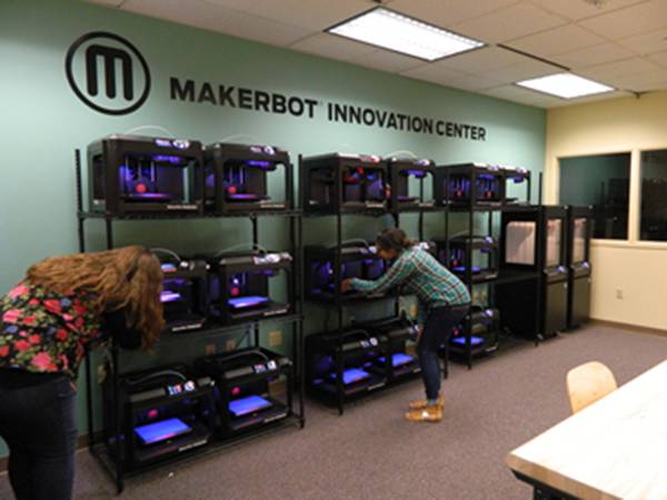 The MakerLab includes the first MakerBot Innovation Center in the West. A MakerBot Innovation Center is a large-scale 3-D printing installation designed to elevate access, entrepreneurship, and multi-disciplinary collaboration on campus. MakerBot Innovation Centers feature cloud-based and scalable 3-D printing management software to easily accommodate growing demand from students, community partners, and entrepreneurs.